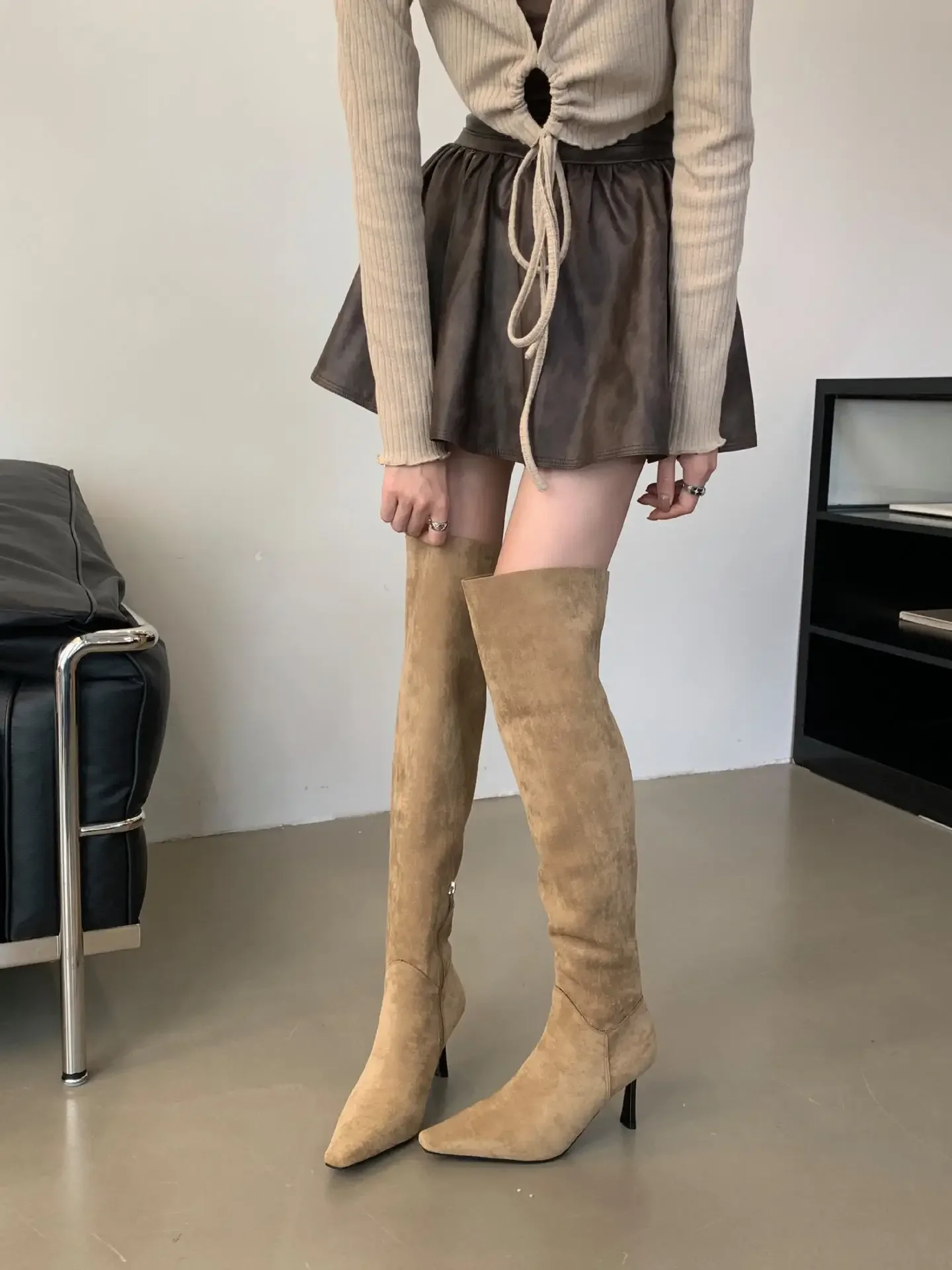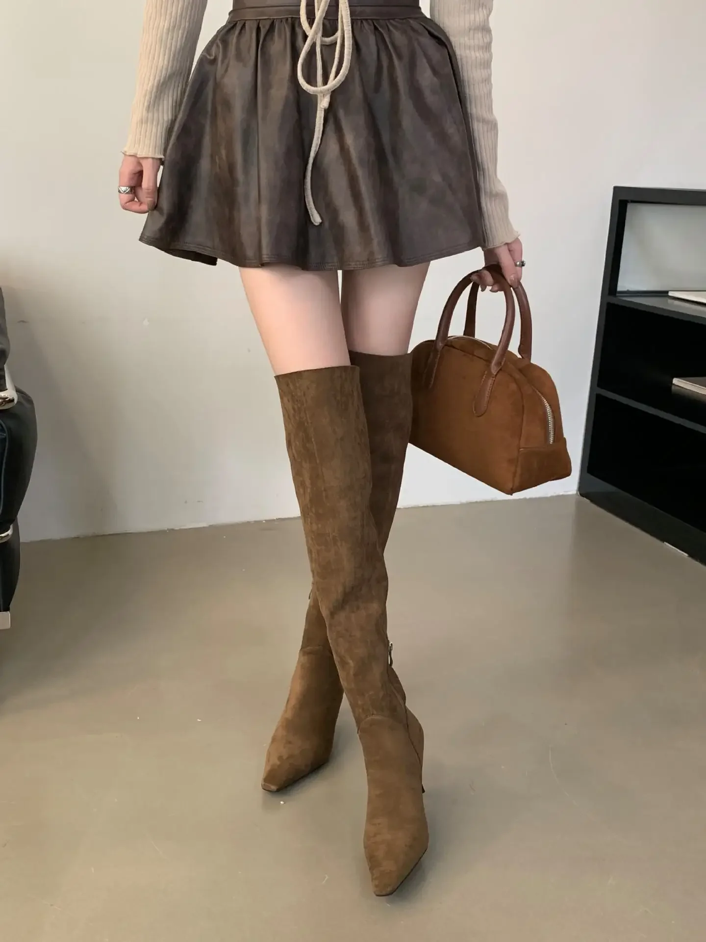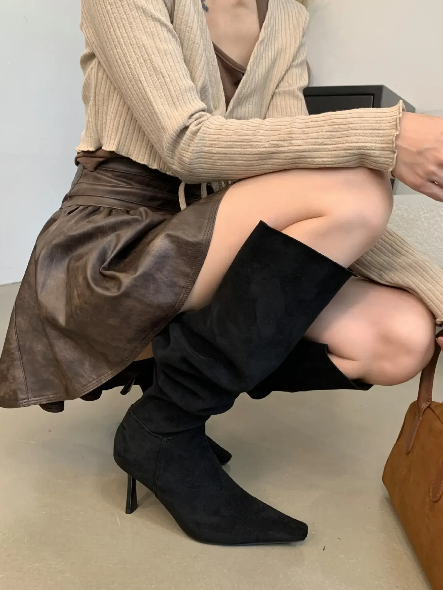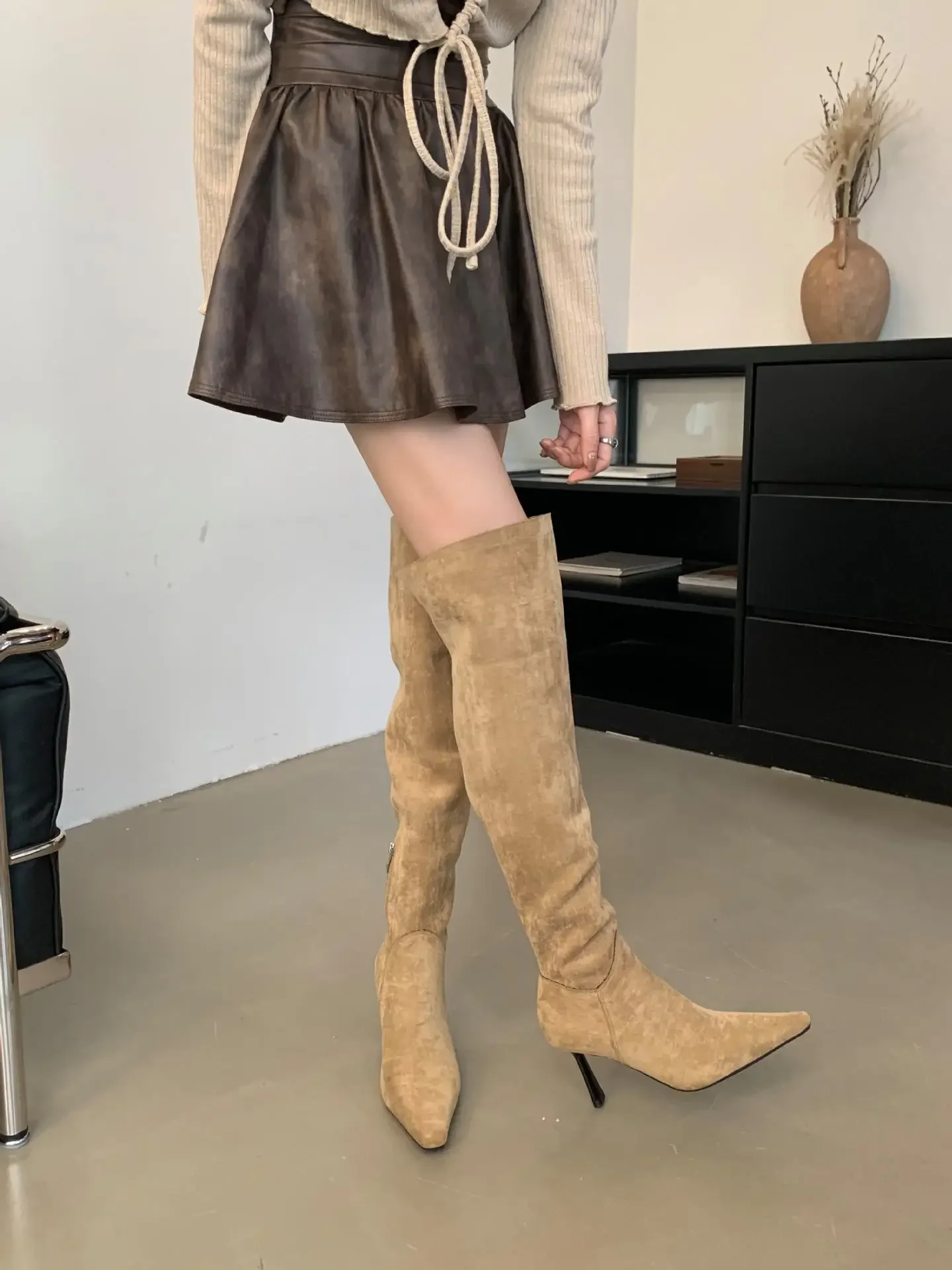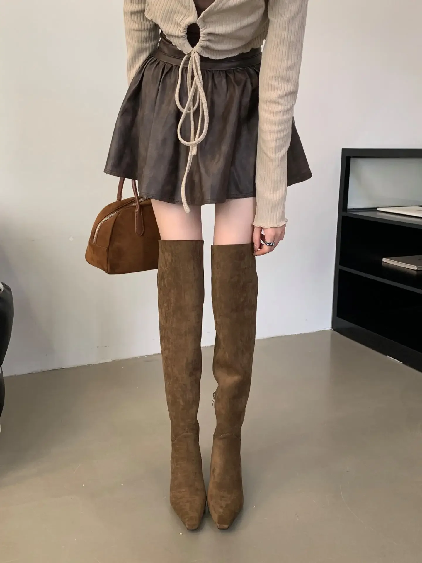 Stap in stijl met deze over-the-knee laarzen die elke outfit instant chic maken. De hoge hak en elegante lijnen geven een retro-flair, terwijl de slanke pasvorm je benen prachtig accentueert.
