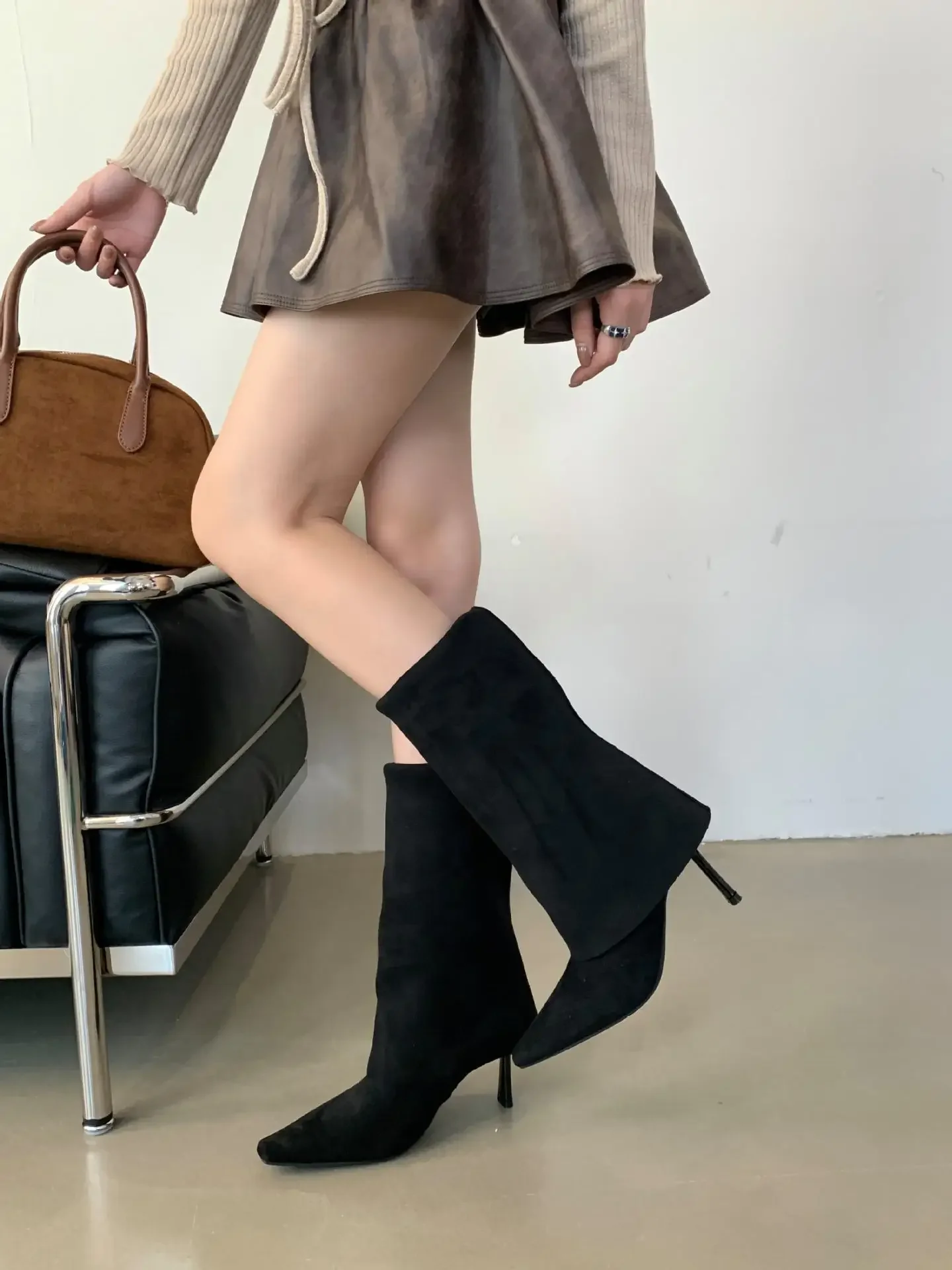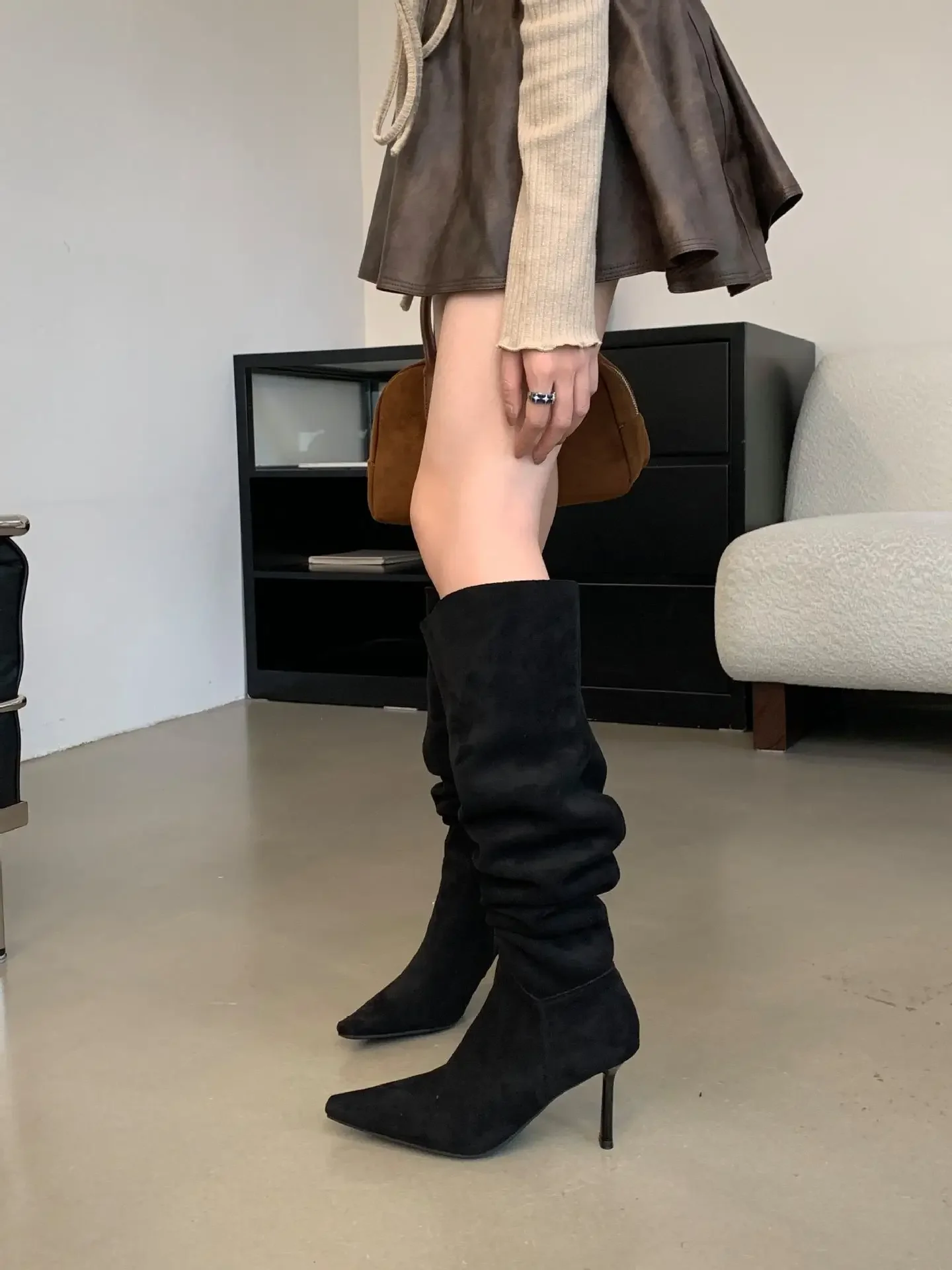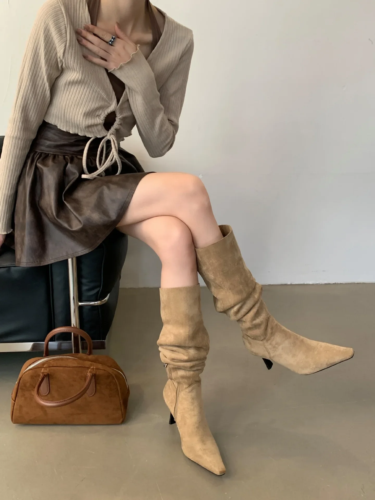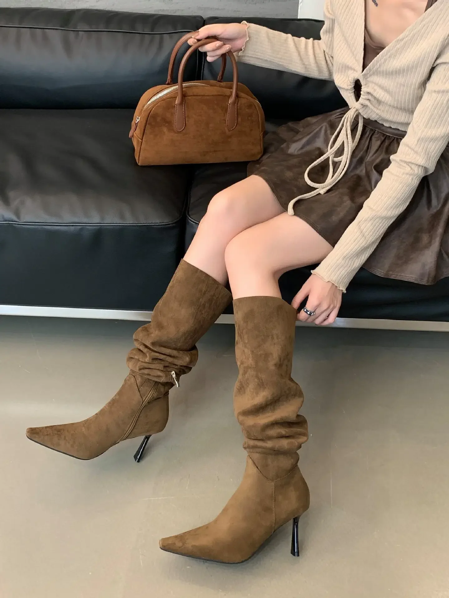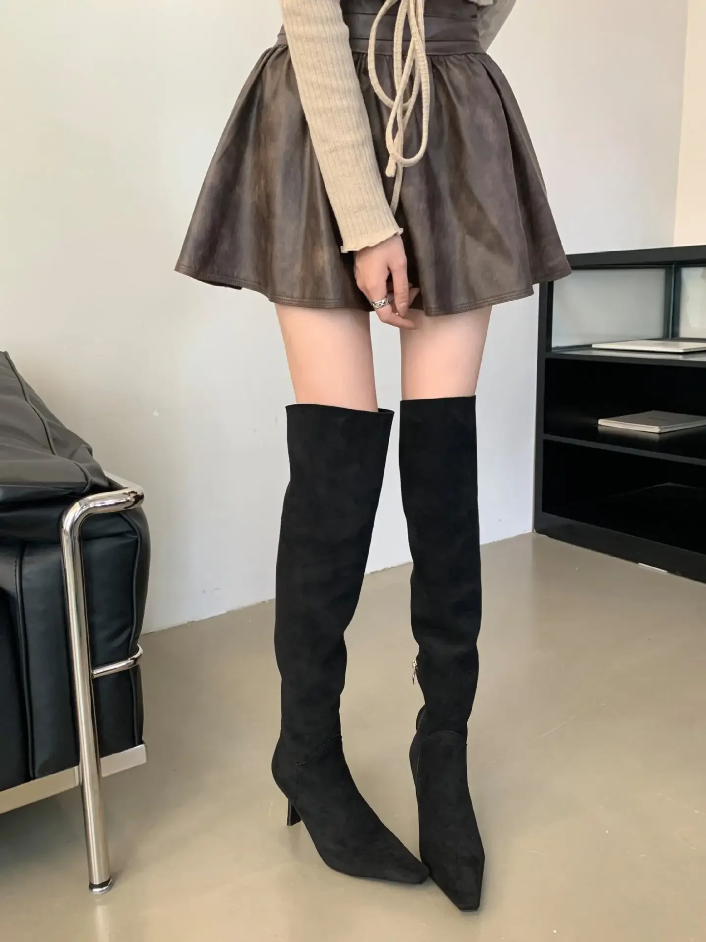Stap in stijl met deze over-the-knee laarzen die elke outfit instant chic maken. De hoge hak en elegante lijnen geven een retro-flair, terwijl de slanke pasvorm je benen prachtig accentueert.