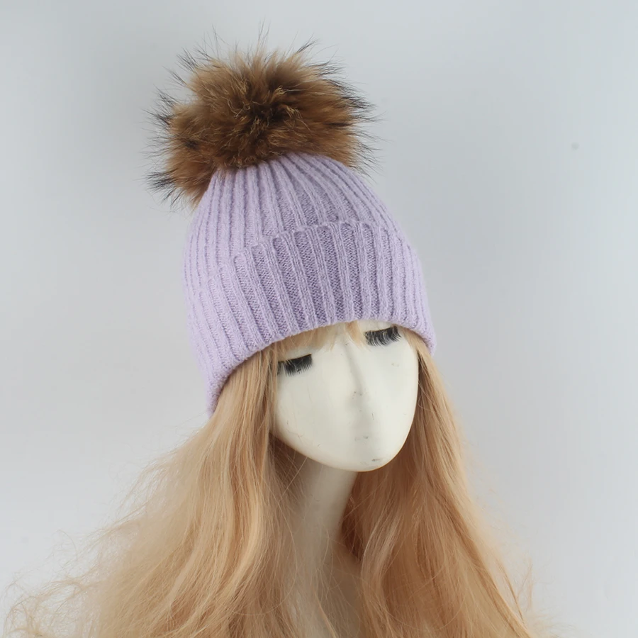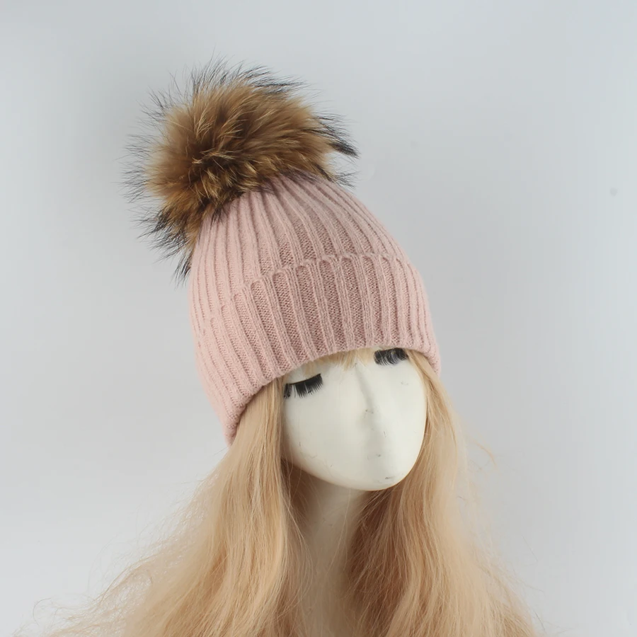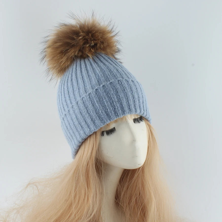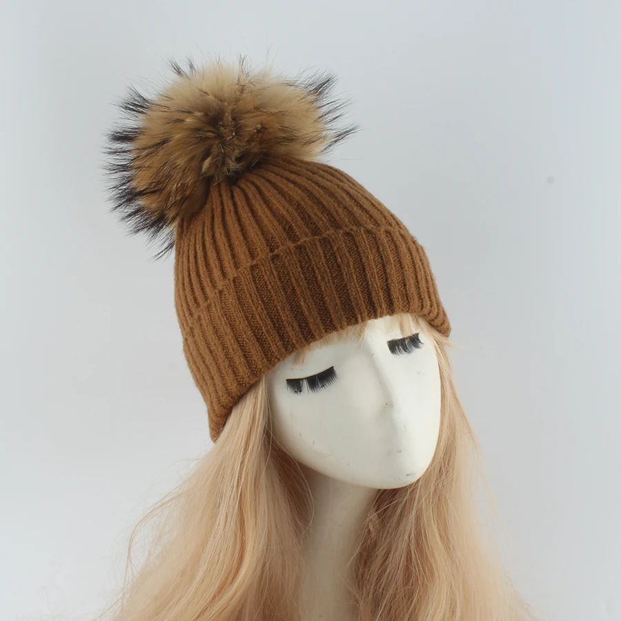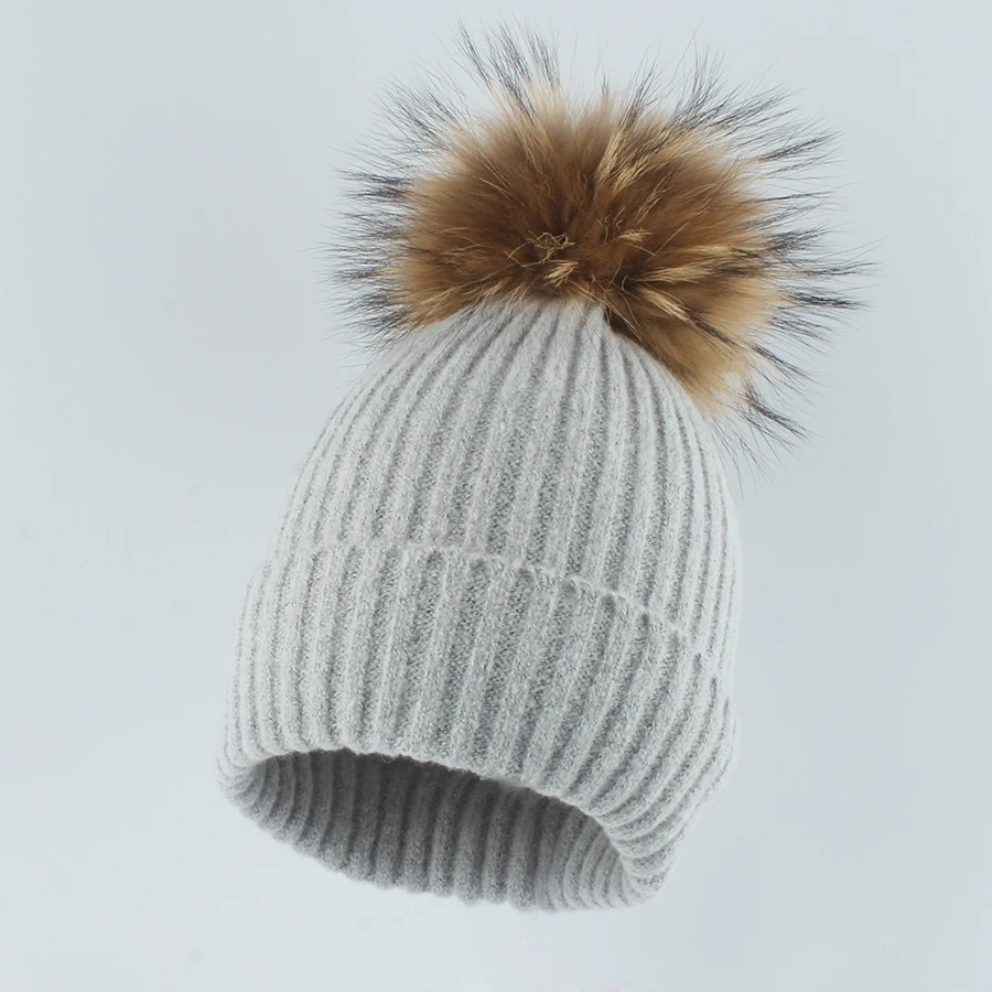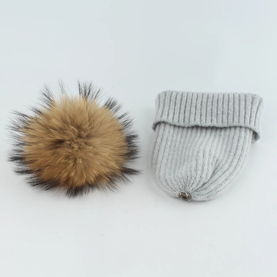 Deze gebreide wintermuts met zachte bontpompon brengt warmte en stijl in perfecte balans. De strepenstructuur en fluffy pompon van echt wasbeerbont geven een luxe, winterse look die elke outfit instant gezellig maakt.