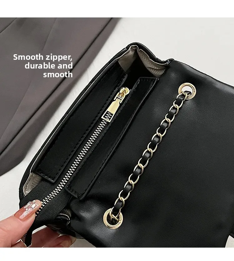 De enkele kettingriem kan crossbody of over de schouder gedragen worden, en binnenin vind je een speciaal telefoonvakje voor al je essentials. Gemaakt van hoogwaardig polyester, zodat stijl en functie moeiteloos samenkomen.