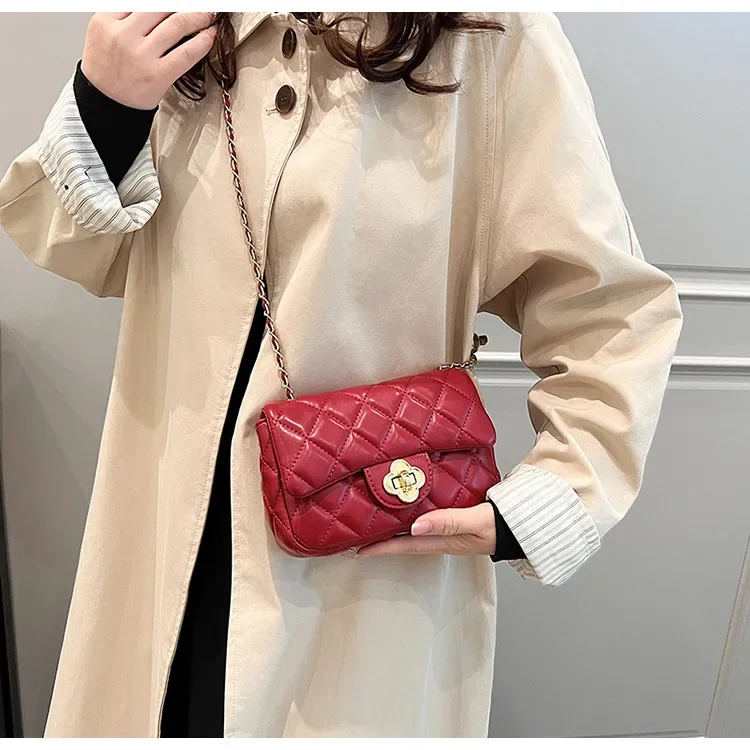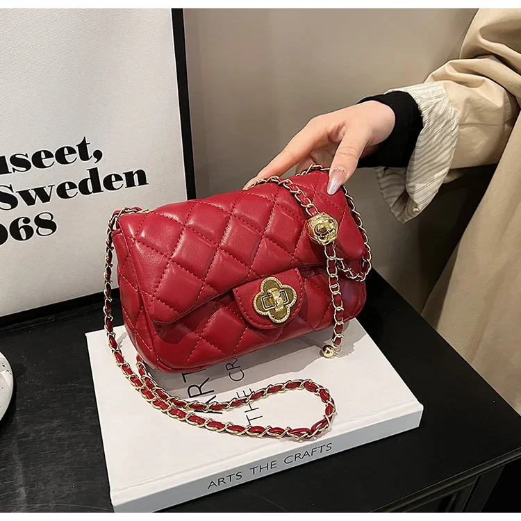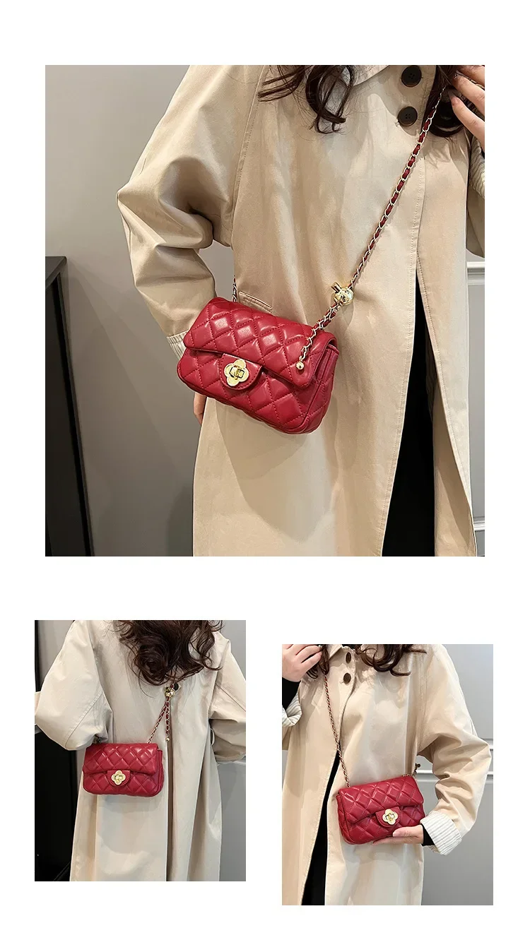 Maak je outfit af met deze compacte rode crossbody. Het diamantborduurwerk geeft een subtiele glans, terwijl de neutrale, minimalistische vorm haar een veelzijdige all-match tas maakt voor elke gelegenheid.
