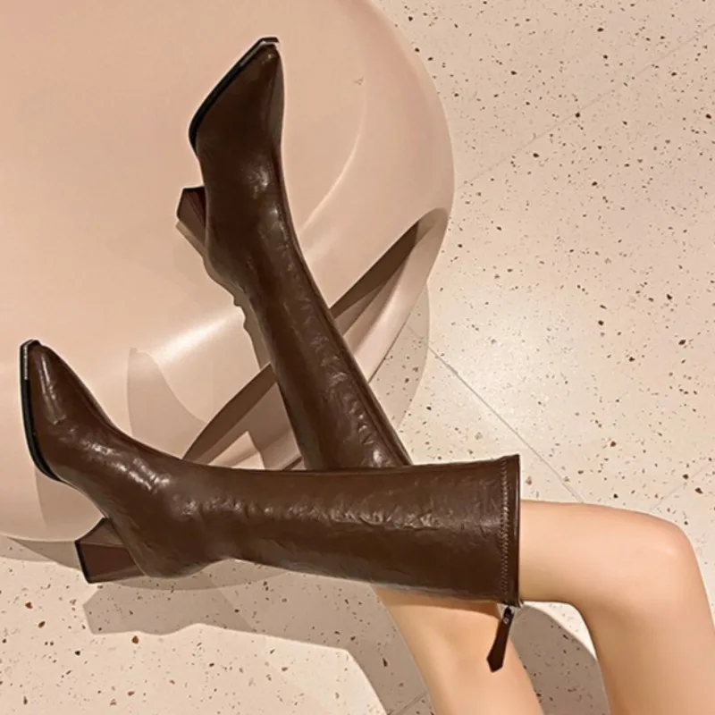 De Chic Winter Boots combineren fashion met functionaliteit. Het puntige design, de dikke hak en de praktische rits aan de achterkant maken deze boots perfect voor koude dagen, terwijl de anti-slip zool zorgt voor veiligheid en comfort bij elke stap.