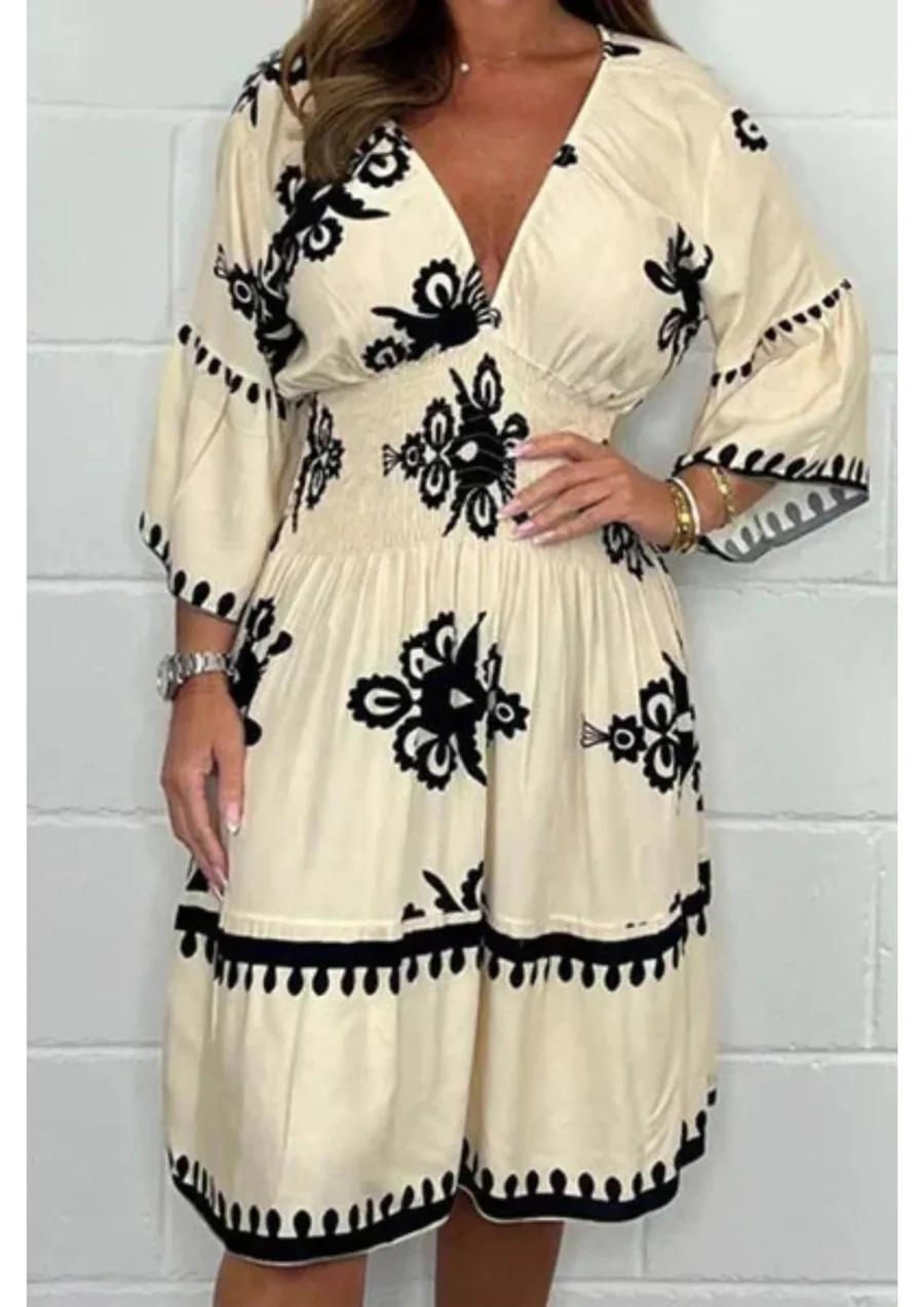 Deze jurk betovert met haar elegante V-halslijn die je decolleté perfect accentueert. Het ontwerp flatteert je figuur en creëert een onweerstaanbaar vrouwelijke look.